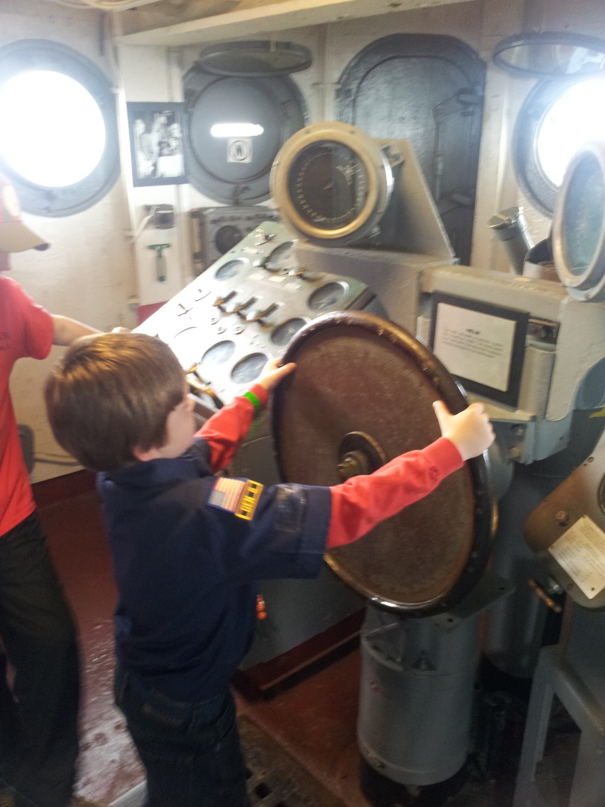 What stood out to the boys? If you ask them, they will tell you about the galley with a recipe for 10,000 chocolate cookies printed on the wall. Or they’ll describe the brig, the massive engine room and the gigantic hangar containing old aircraft.