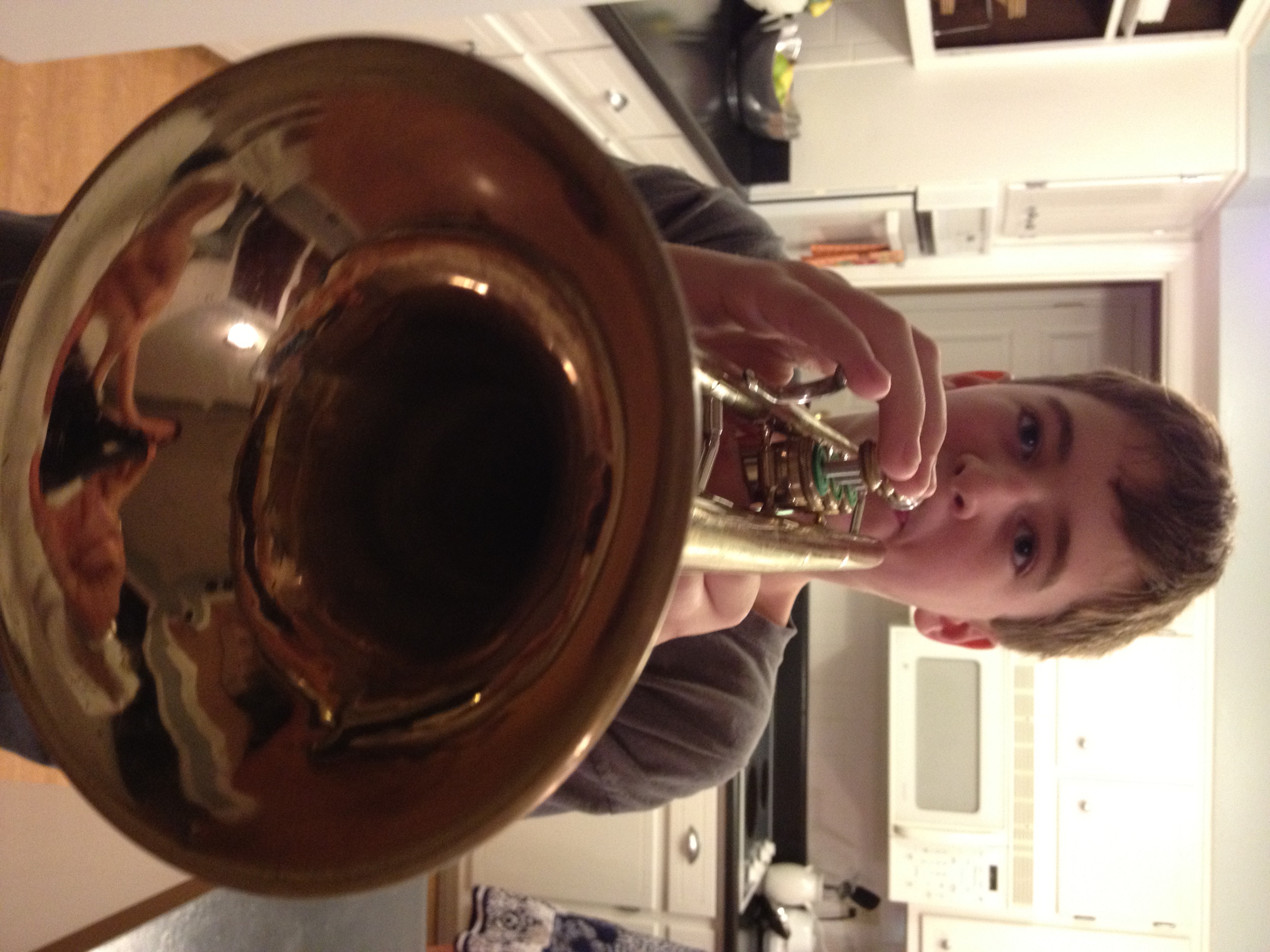 Last Saturday Barron took possession of a trumpet, loaned to him by my friend, Brian, himself, a veteran of high school and collegiate marching band. Since that time, what could be mistaken for the love-sick mating call of the Canada goose has been reverberating off my rafters as Barron “familiarizes” himself with the instrument.