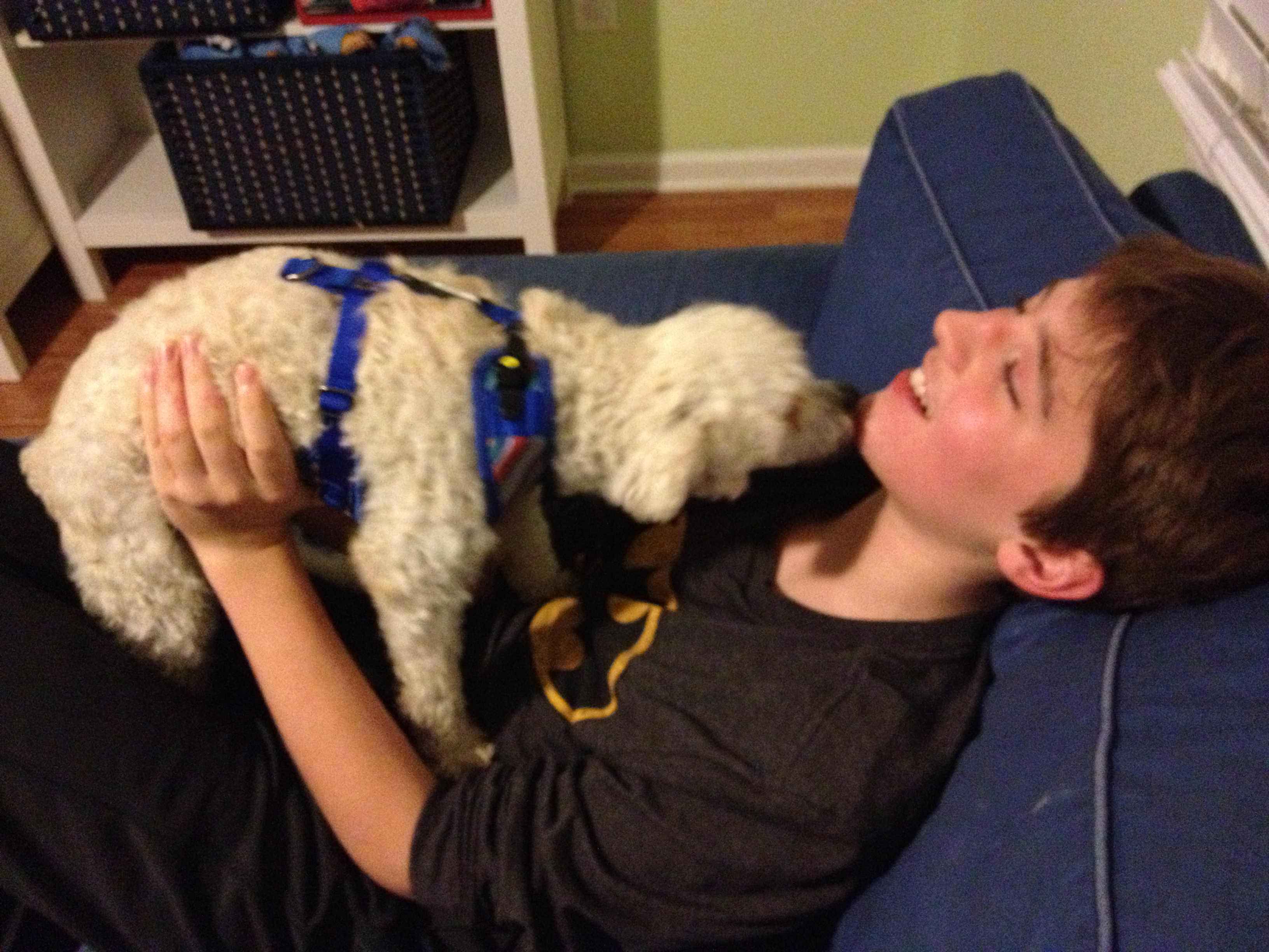 This week, I lost the battle. Two weeks after Barron and Carla met a poddle-Bichon Frise mix (or “poochon” if you prefer) named “Tobey,” at a pet store adoption day, we brought home another bundle of joy.