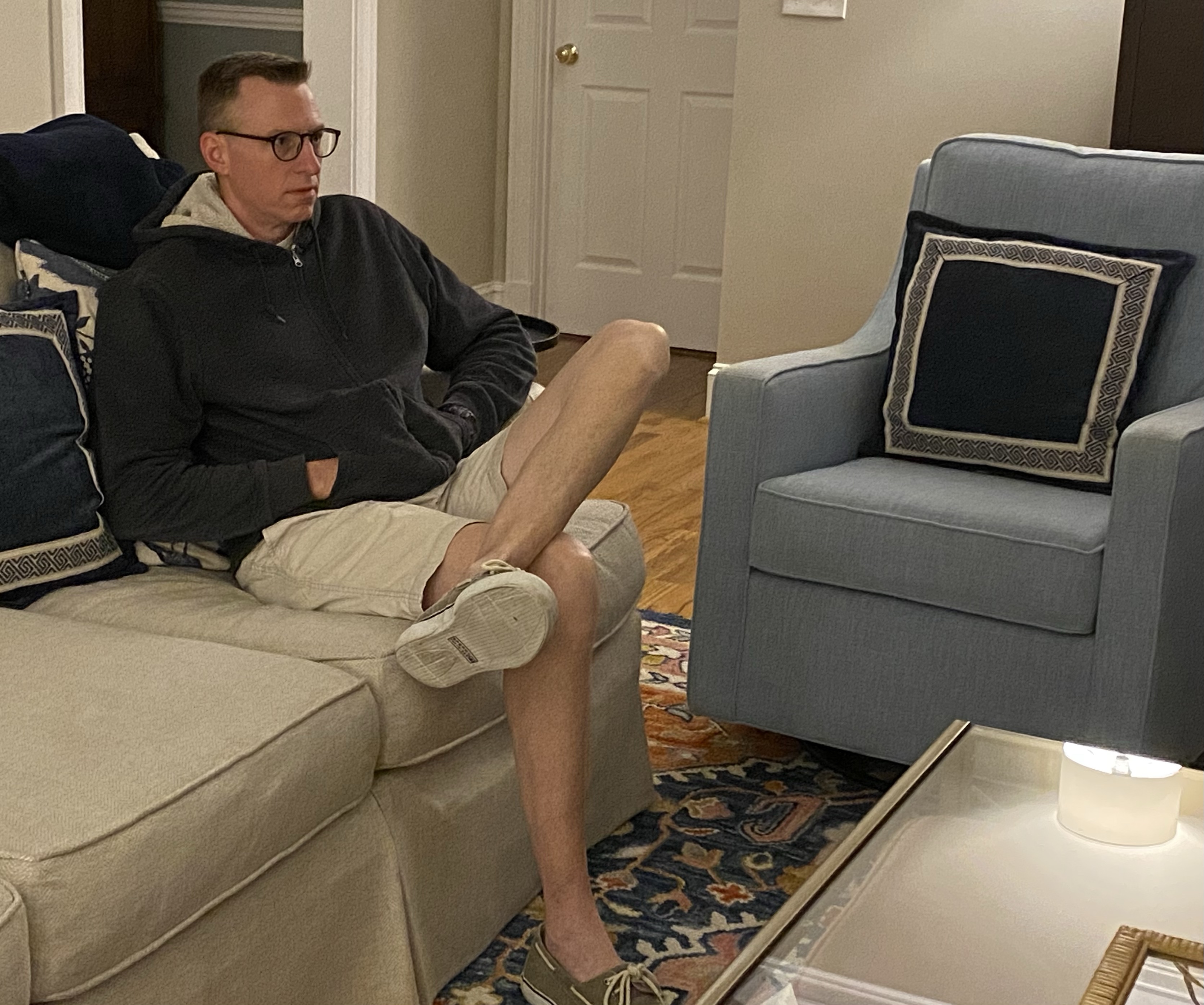 Jerry Seinfeld has a great bit observing that all dads’ casual wardrobe is made up of the clothes of the last good year of their lives. As evidence, Carla had to force me to get rid of my baggy ‘90s jeans, and she completely purged my closet of pleated pants, which I’m sure will make a comeback now.