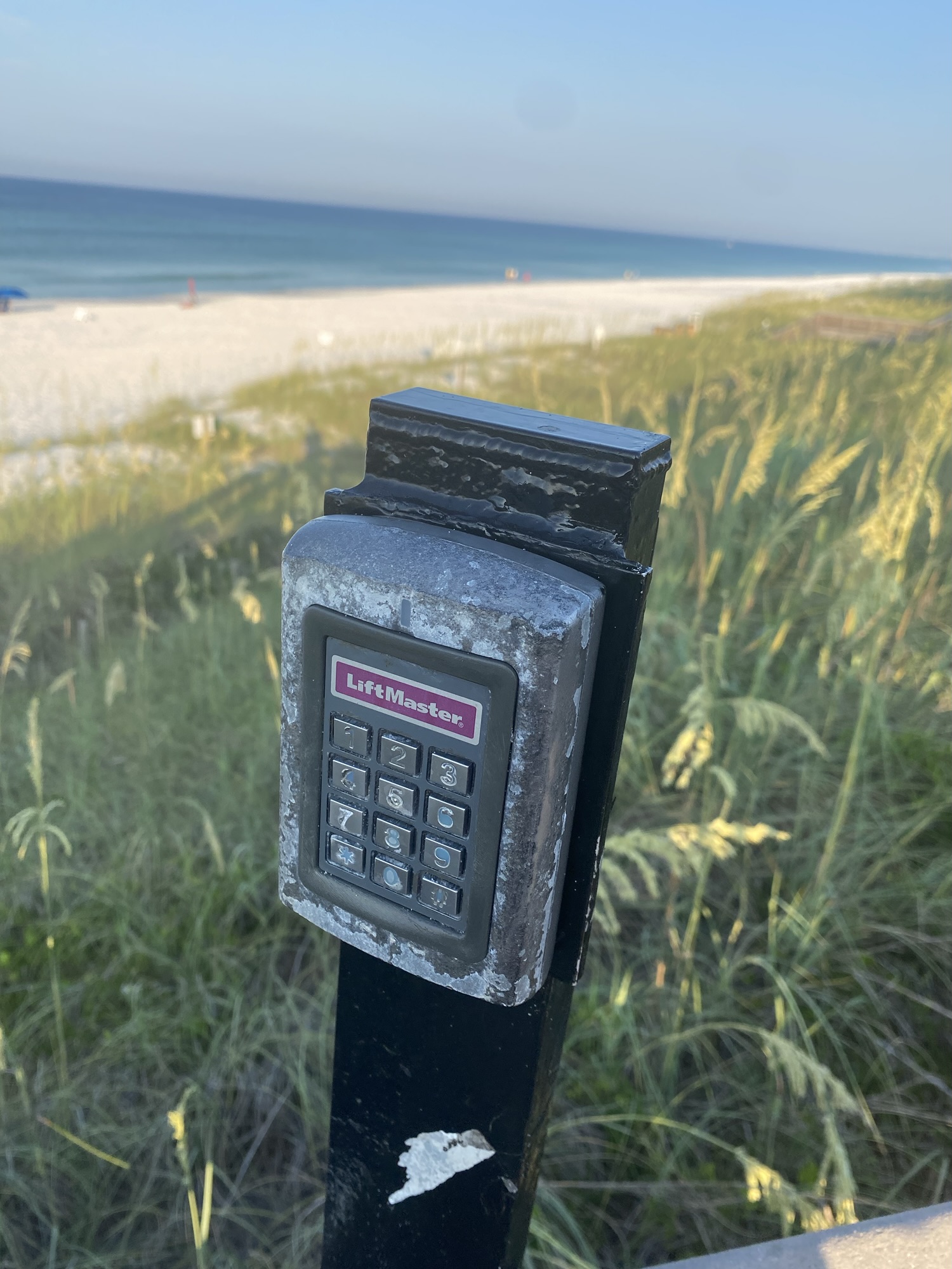 On our first day, I went out to the beach to scout our setup. In fewer than 10 minutes, a tropical downpour popped up sending me scrambling back up the boardwalk to the gate providing access to our condo. Since it was my first time having to use this apparatus, I pulled out my phone to see the code on Carla’s helpful Note.
