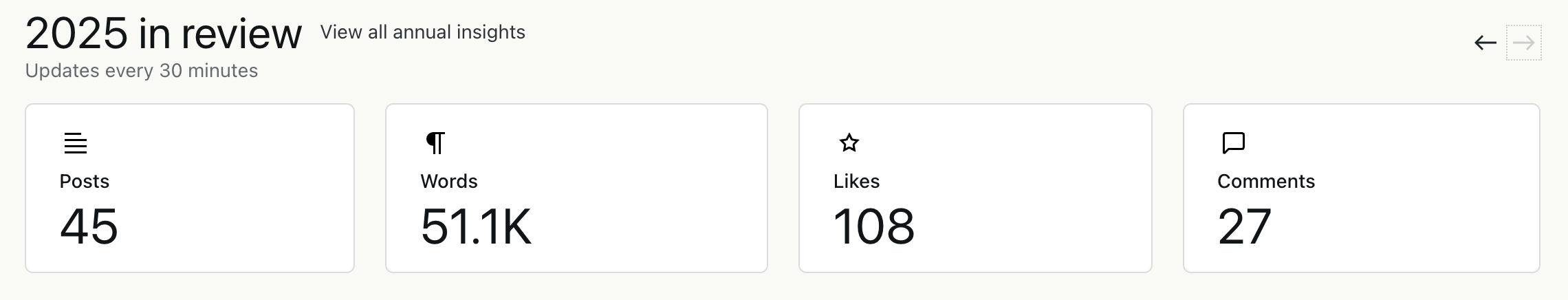 And that’s my chief takeaway for 2025. I may not make the world a better place in the aggregate, but I can reach out and annoy… er… entertain 32 people a day with my unique brand of Southern-inflected wit and charm. This is a labor of love that contains its own reward.