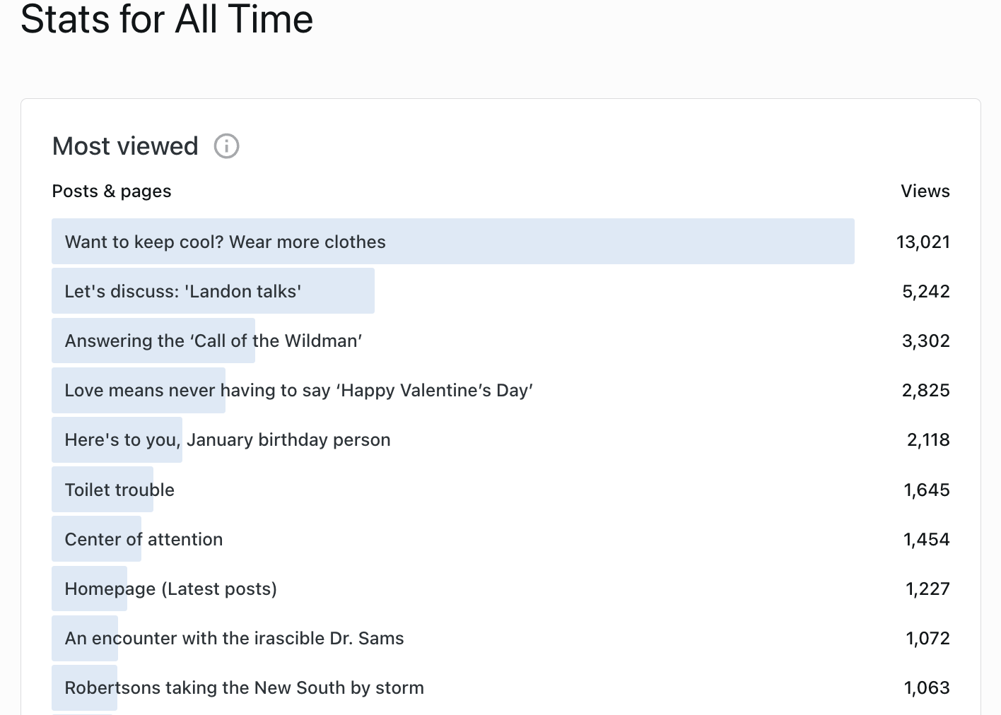 But since New South Essays began posting in 2011, the post with most traffic by far was 2012’s “Want to stay cool? Wear more clothes” with 13,021 views. I don’t know about temperatures, meteorology, science and such, but this clearly proves global warming.