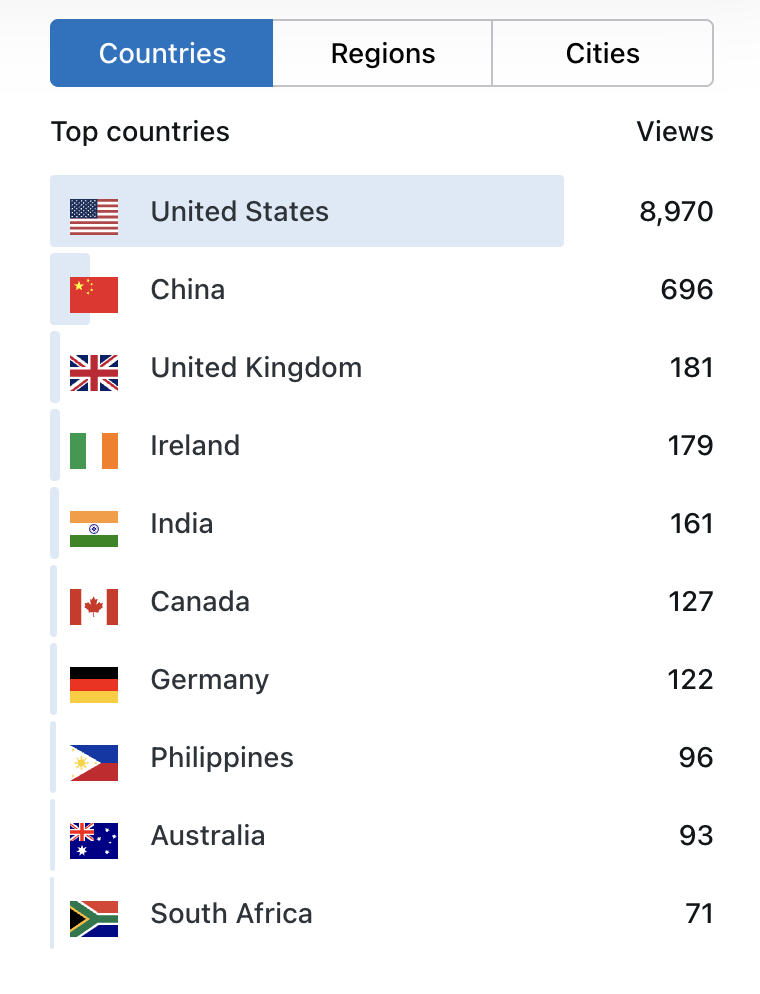 Another fascinating tidbit is the growth of New South Essays’ international following. Once again, Americans make up the largest demographic of readers, but look who came in second…